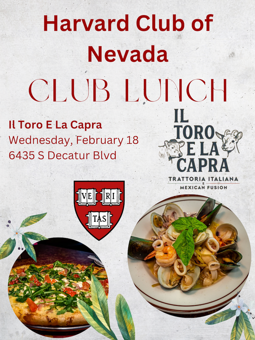 Join us for our next Club Lunch at Il Toro E La Capra! These casual afternoon gatherings offer a fun, informal way to meet, network, and connect with the local Harvard alumni community while supporting locally owned restaurants.
