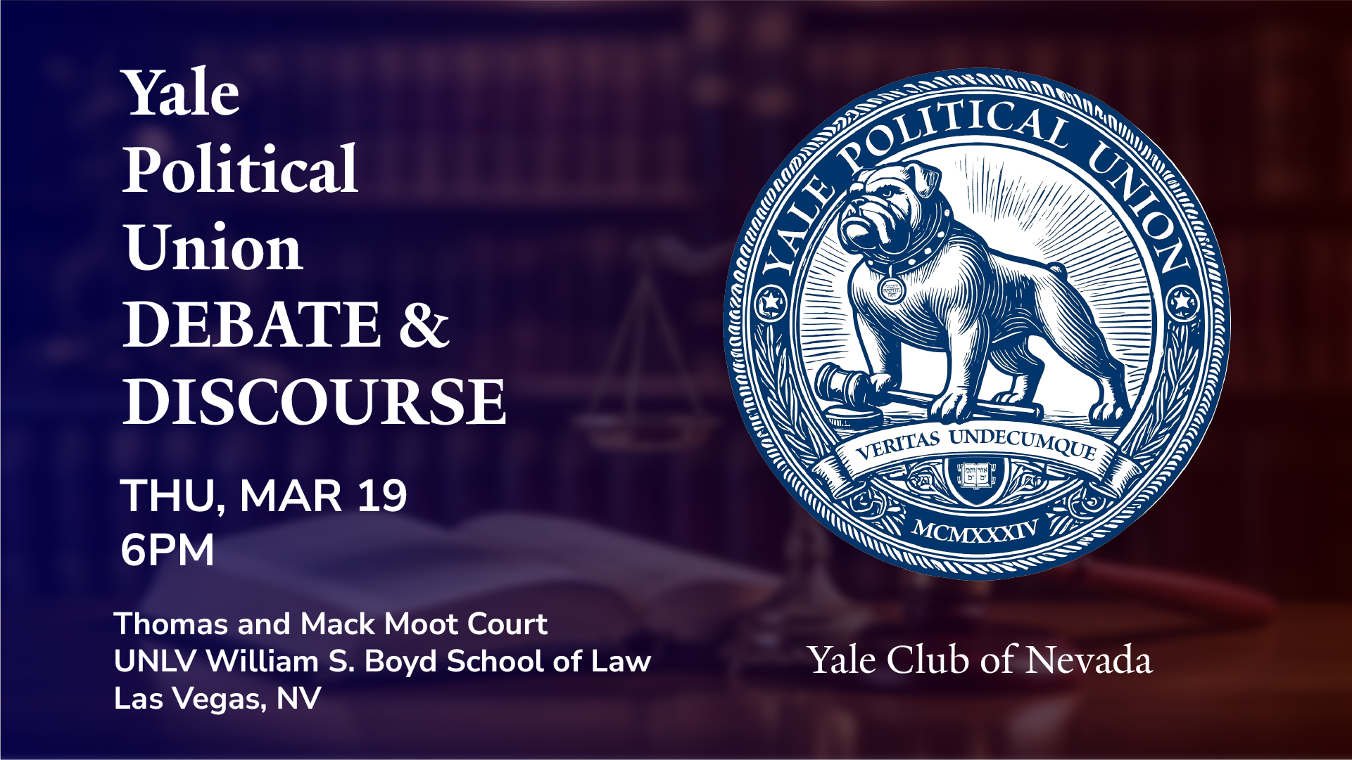 Join the Yale Club of Nevada (and the Vegas Ivy Plus Community) for an evening of parliamentary debate featuring the Yale Political Union (YPU), the nation's oldest collegiate debate society. -